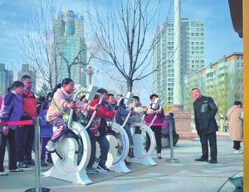 除了智能划船机和动感单车,西海子公园新增的体控游戏机、智能象棋桌、超大秋千等趣味健身设施也吸引了大量市民参与,让户外运动变得新奇有趣。