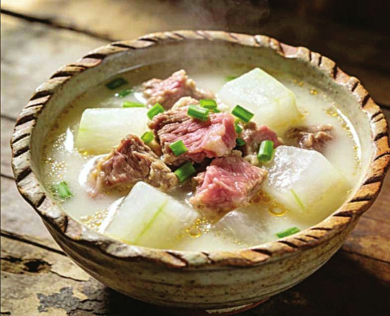 将白萝卜、羊肉洗净切块备用,锅内放入适量清水将羊肉入锅,开锅后五六分钟捞出羊肉,把水倒掉,重新换水烧开后放入羊肉、姜、料酒、盐,炖至六成熟,将白萝卜入锅至熟。益气补虚,温中暖下。对腰膝酸软,困倦乏力,脾胃虚寒者更为适宜。