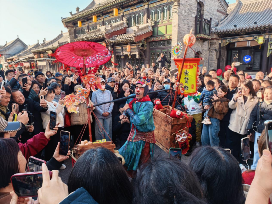 ▲3月18日,卖货郎杨翔在太原古县城表演
