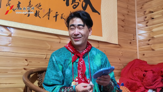 3月18日,记者在太原古县城见到了杨翔。他刚结束当日的第二场表演,身后还跟着一群游客,追着要合影拍照。他一一应着,眉眼间仍是那股喜庆劲儿。和他闲聊几句,半小时的休息时间一晃而过。我们跟着人群,看了杨翔当日的最后一场表演。等游客渐渐散了,才寻着空当坐下来聊。私底下,杨翔也总是笑着。