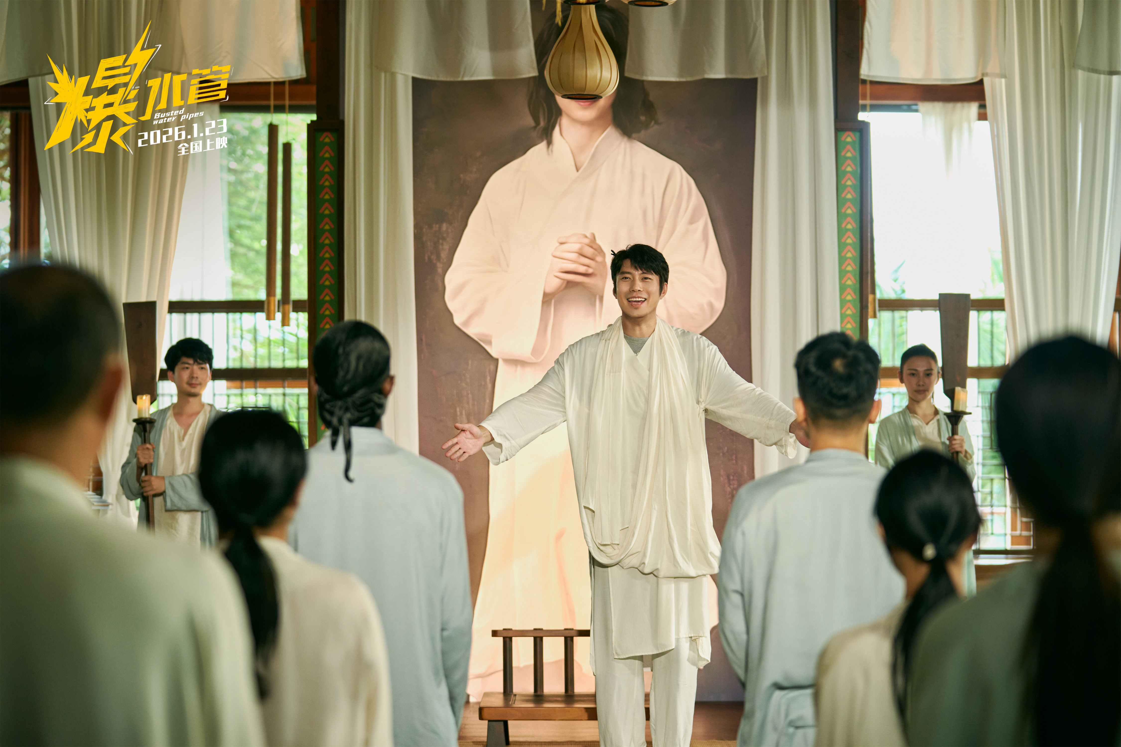 开年送“喜”!犯罪喜剧《爆水管》集齐了开心麻花、喜人、脱口秀三大喜剧门派,众多实力派的优秀喜剧演员齐聚,一起爆梗不断。在此次发布的预告中,付航饰演的东南亚僧人也令人眼前一亮,从形象到性格都十分有趣。他先是“热心肠”地为生病卧床的局长老葛(杨皓宇 饰)盖上了白布,而后又结结实实地挨了“狠人担当”罗浩的一记右钩拳,可谓“讨打”又“讨喜”,反差感十足。不仅如此,影片还有特别出演杨皓宇、蒋雪鸣、付航、潘斌龙、卜钰,主演张琪、黄炎、徐东、杨朕,以及友情出演周彦辰、刘亦淳、景瓷、艾然带来“笑果”十足的表演,1月23日一起笑到发癫!