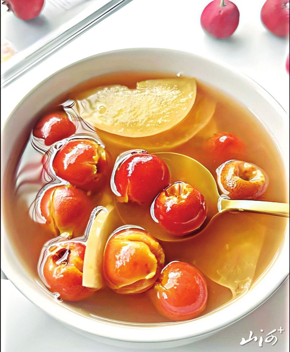 山楂雪梨汤是一款非常适合秋冬季节饮用的汤品,制作简单,口感温暖。将山楂和梨一同放入锅中,加入适量的水煮沸,然后加入适量的冰糖继续煮熟即可。山楂雪梨汤不仅可以暖胃驱寒,还具有润肺止咳的作用。