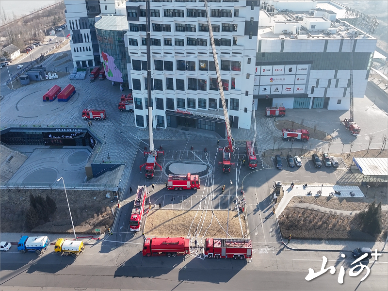 山西晚报·山河+讯 1月22日,山西省消防救援总队北部协作区朔州、大同、忻州消防救援支队联合朔州交警、医疗、燃气公司、电力、园林等部门,在朔州希尔顿欢朋酒店组织开展高层建筑灭火救援联合实战演练。
