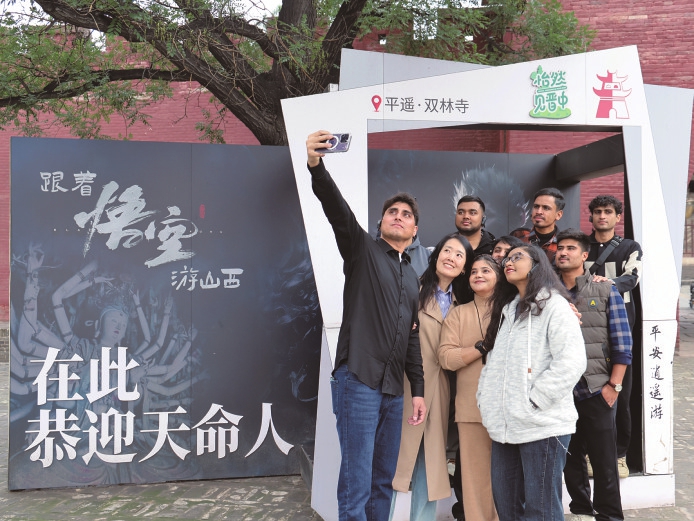 “双林寺,天命人来啦!”10月15日,“中国古建看山西”外籍博主发现山西主题传播活动走进《黑神话:悟空》取景地平遥双林寺,来自多个国家的国际体验官和留学生们,一同跟随“悟空”的脚步,探古建、赏彩塑,开启了一场跨越虚拟与现实的文化寻踪。