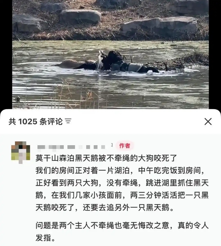 山西晚报·山河+讯 近日,有网友在社交平台发布视频称,浙江湖州德清县莫干山开元森泊度假酒店内,一只黑天鹅被未牵绳的大狗咬死。视频迅速引发网友热议。