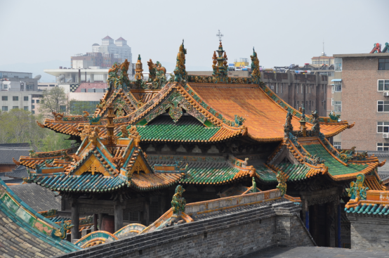 三清楼顶3米高孔雀蓝琉璃鸱吻夺目,千尊明代道教彩塑铺陈神仙谱系,全庙琉璃覆盖成就“三晋琉璃艺术博物馆”。