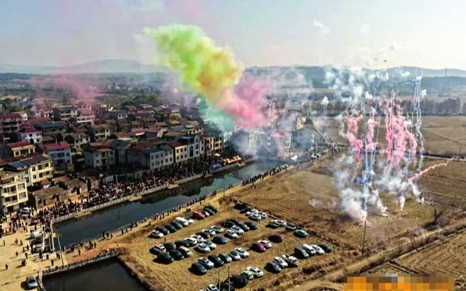 网红“卧龙哥”举办的杀猪宴活动中的烟花秀。据南昌晚报