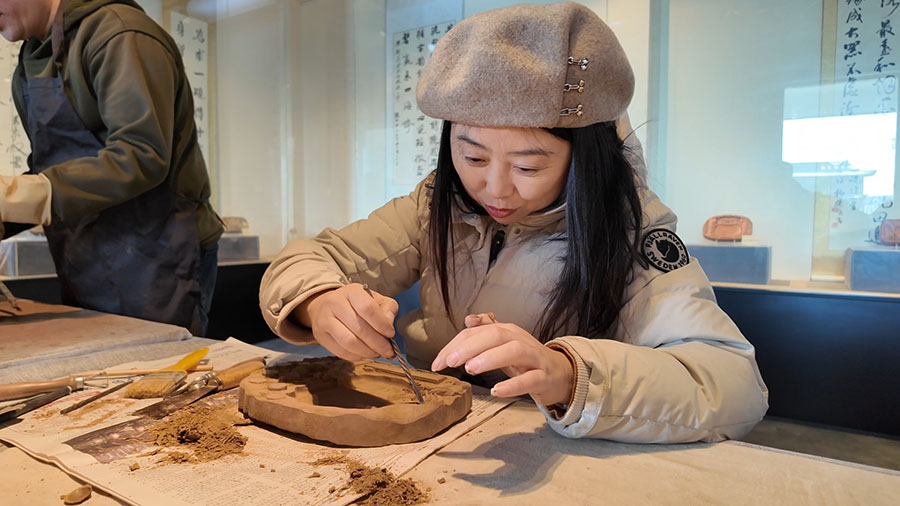 博主@花生camille在体验澄泥砚雕刻