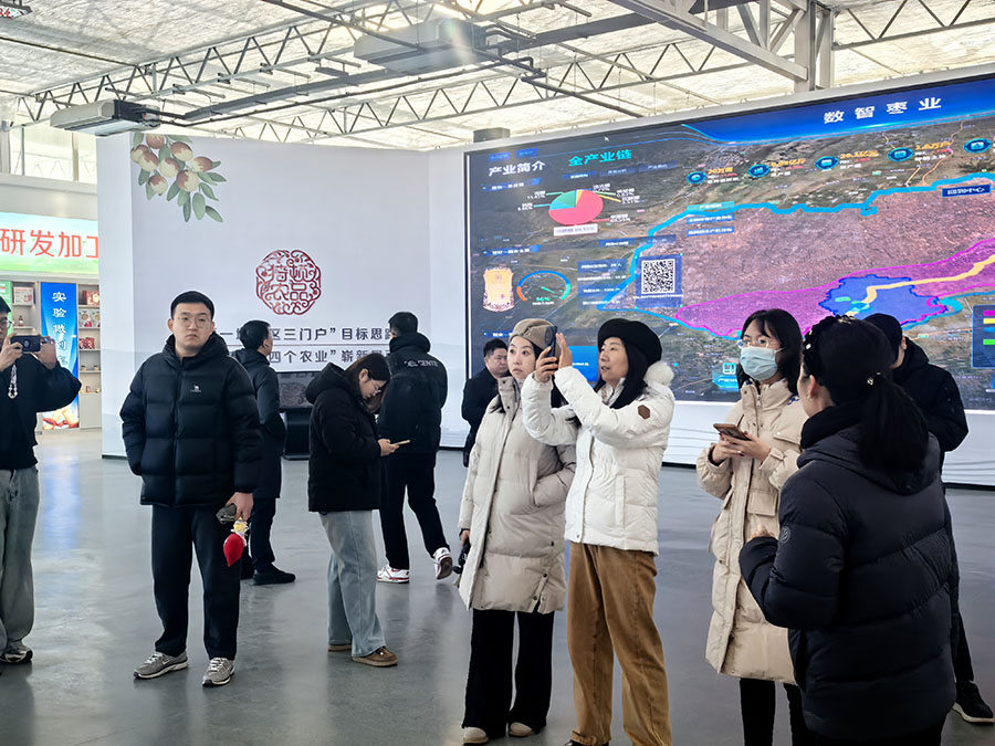 网络名人和媒体代表在临猗现代设施鲜枣数智产业园参观