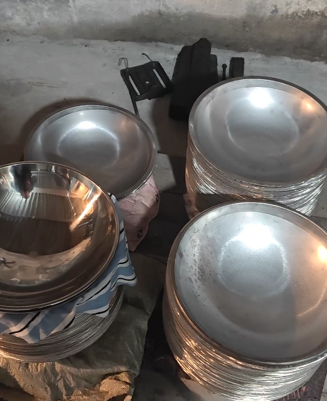 11月4日,极目新闻记者来到莘塍富强不锈钢制品厂。虽然是下雨天,仍有人慕名到访、拍摄,但锅厂几乎都婉拒了。厂内人员向大家解释道:“现在没有货,还没有开始做。”