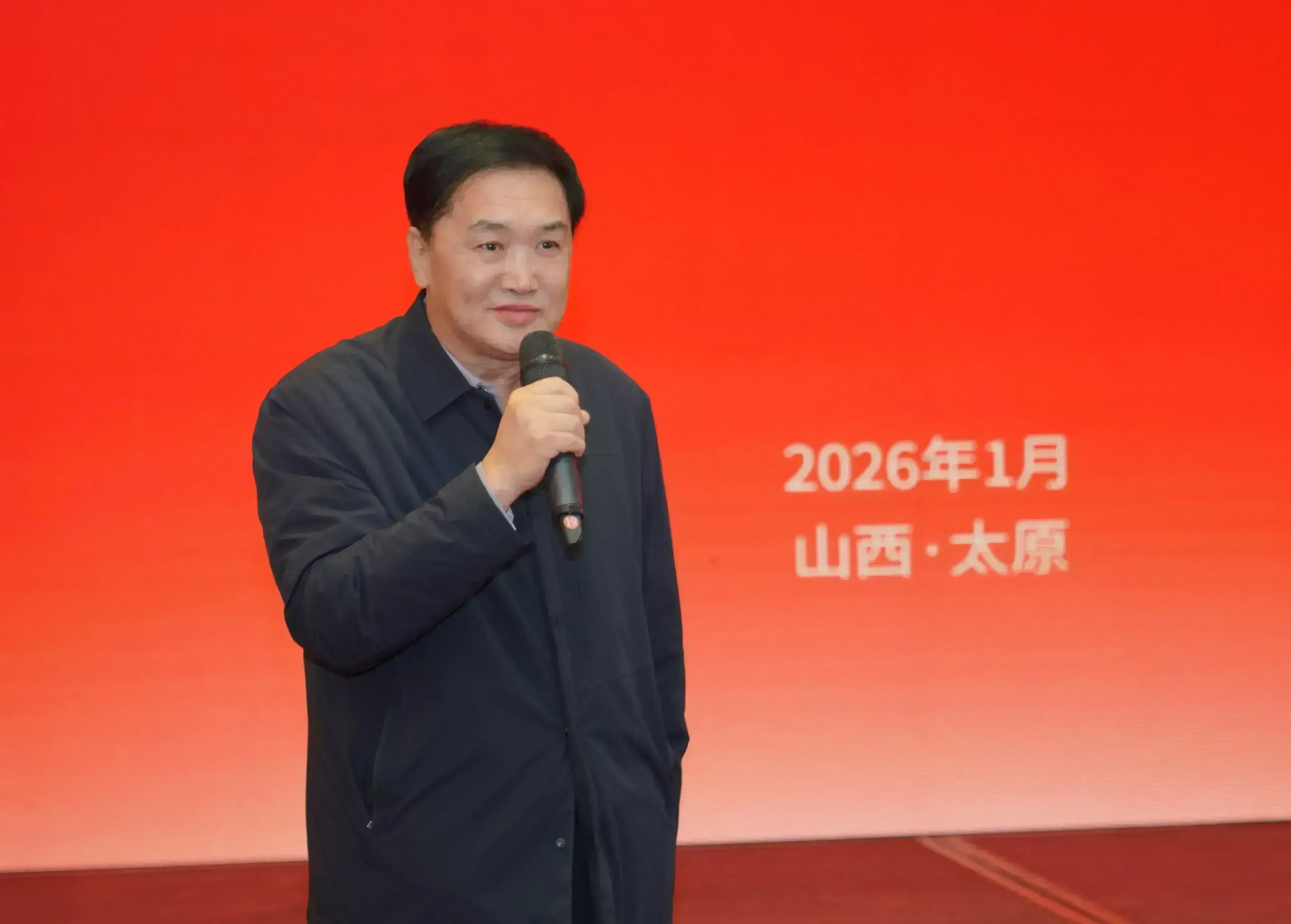 山西中华文化促进会主席姜新文发言,赞扬促进会工作成效,希望未来继续坚守文化根脉,深化跨界合作,培育青年人才。