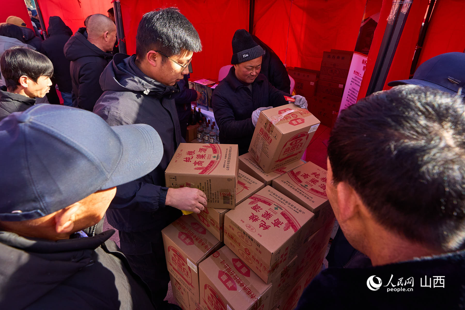 顾客成箱采购酒水。
