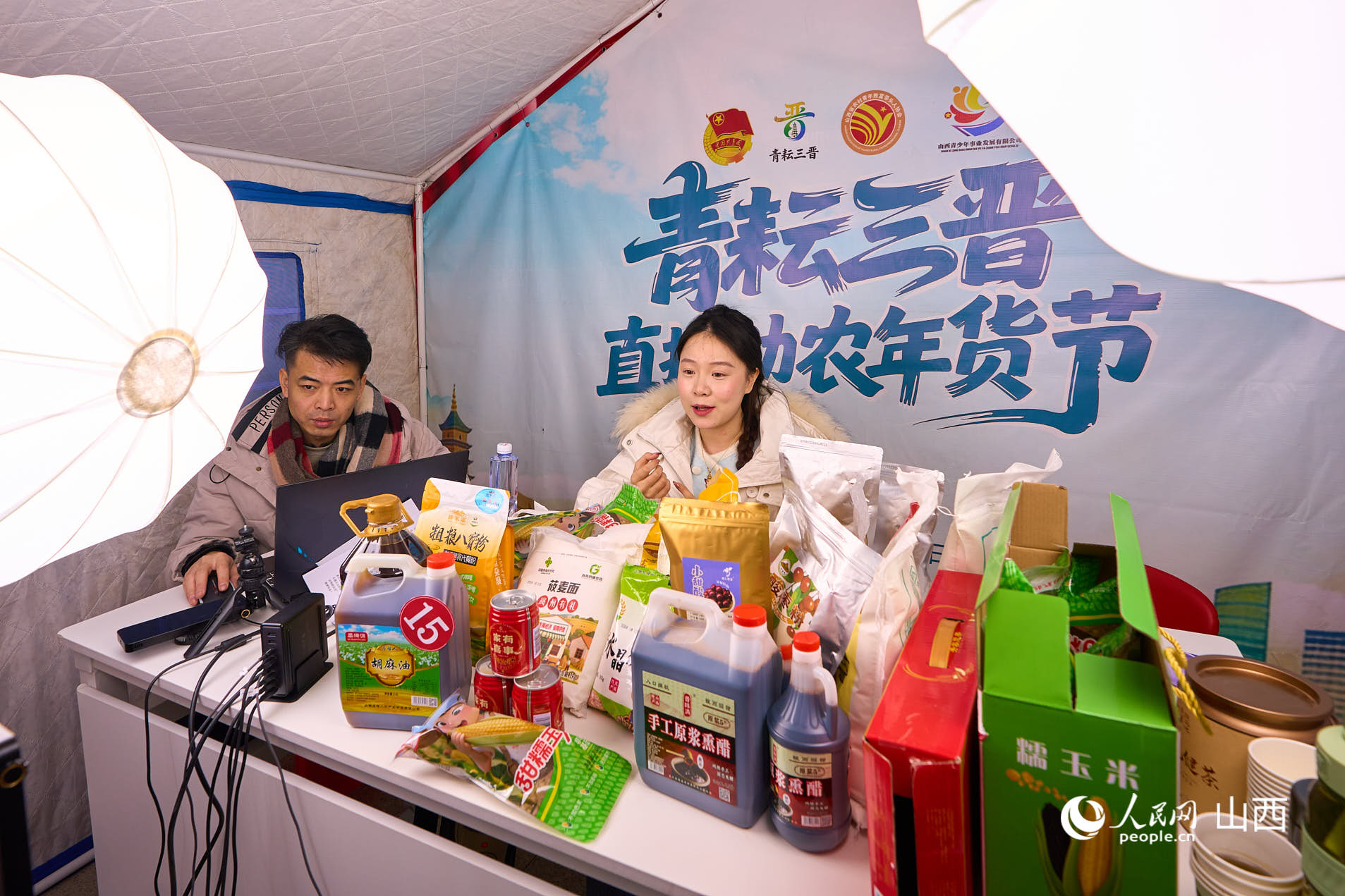 大集现场开设售卖农产品的直播间。