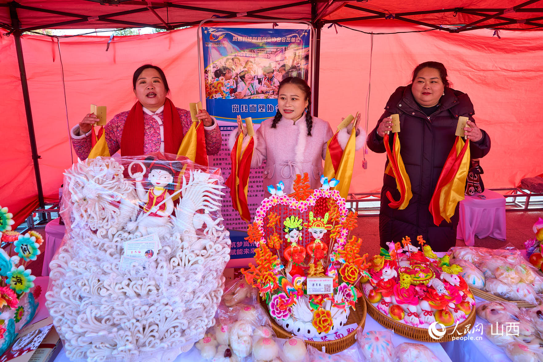 商家举着花馍合影留念。