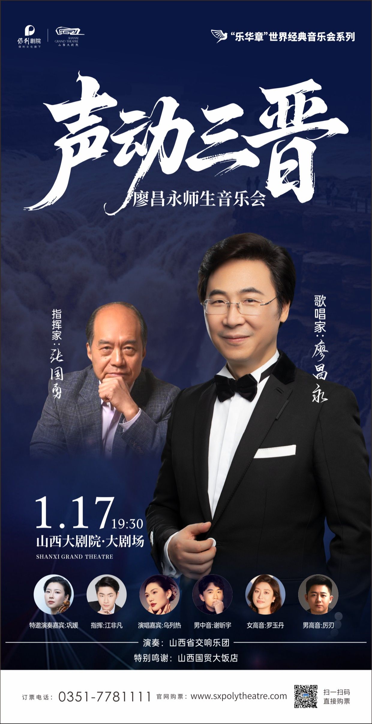 1月17日19时30分,山西大剧院·大剧场将迎来一场高水平的音乐盛宴——“声动三晋·廖昌永师生音乐会”。本次音乐会由国际著名男中音歌唱家、上海音乐学院院长廖昌永领衔,他将携手多位杰出青年音乐家,共同呈现一场兼具艺术高度与乡土情怀的音乐盛会。