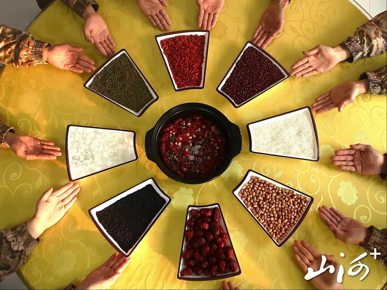 操作间内,炉火正旺,炊事员李冬冬手持长勺,在砂锅里缓缓搅动。浓稠的粥香裹挟着热气,氤氲了整个食堂。圆桌中央,扇形瓷盘整齐码放着各色食材,官兵们围站一圈,目光灼灼,共同盼着这份暖到心底的美味。一碗碗热气腾腾的腊八粥端上桌,列兵王多齐捧着碗笑着说:“这味儿和我妈熬的一模一样,喝下去浑身都暖和!”