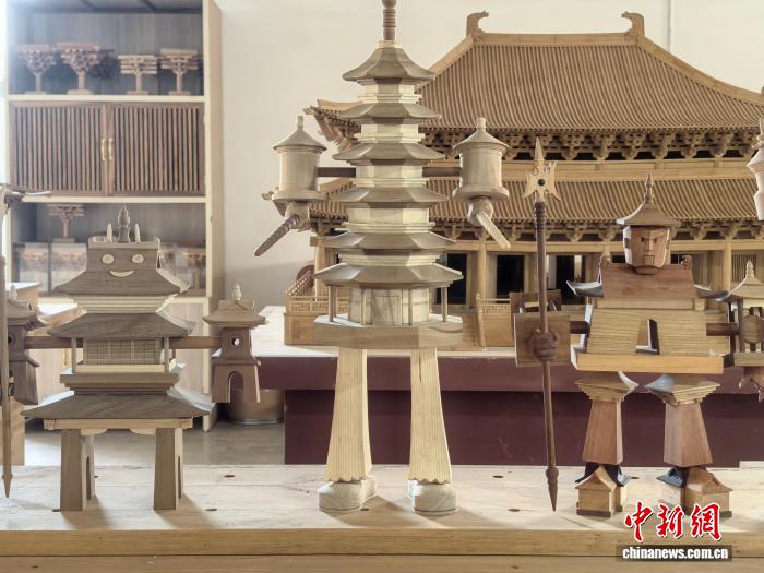 图为一座严格按照1:8比例全木榫卯复制的应县木塔模型。中新社记者 胡健 摄