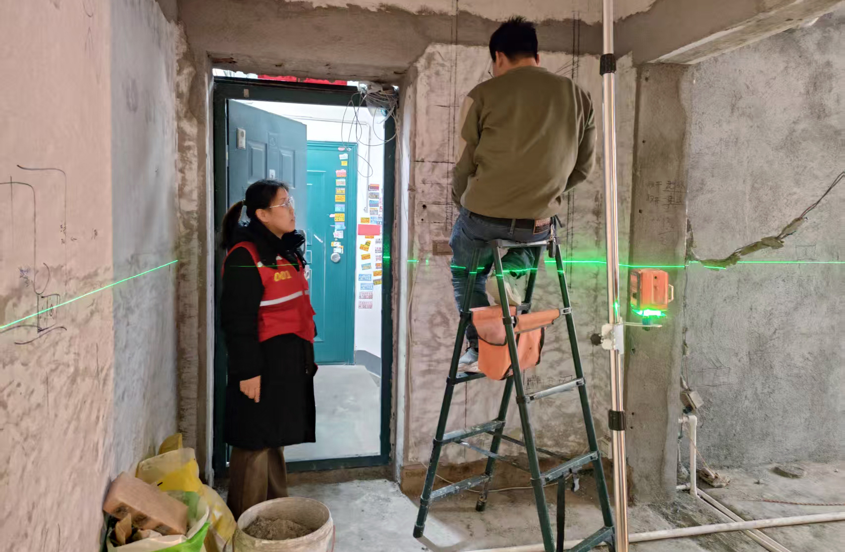 接到诉求后,网格员赶到现场核实情况。在四单元门口,确实看到有装修建筑垃圾堆积在公共区域,水泥块、碎木板、废瓷砖等杂物杂乱堆放,不仅影响居民正常通行,也与小区整洁的环境格格不入。