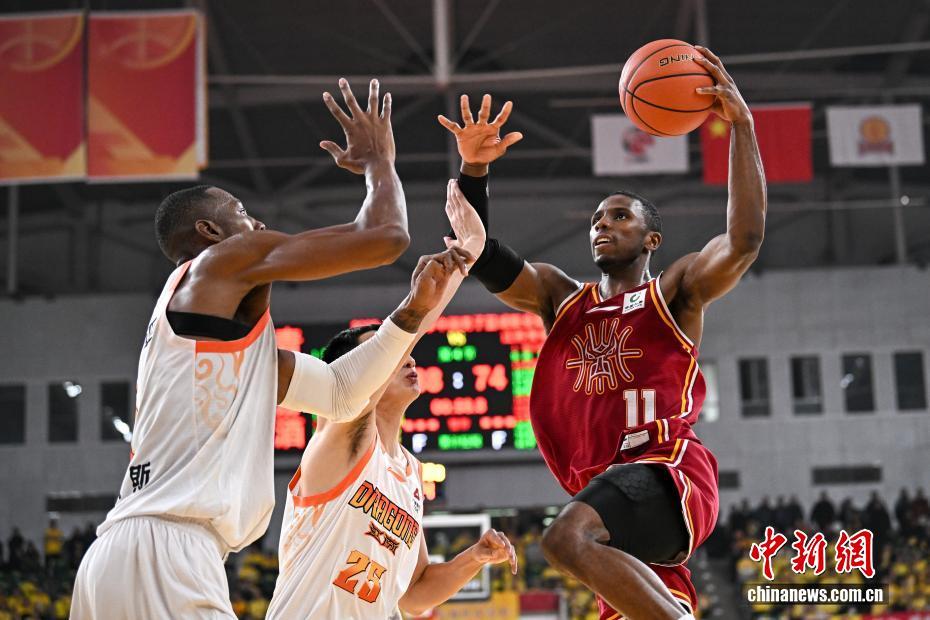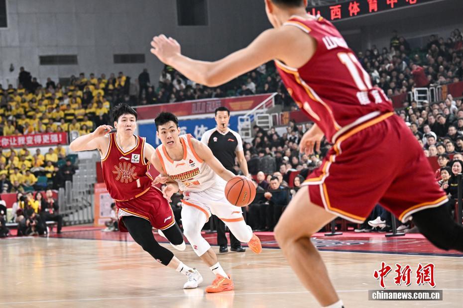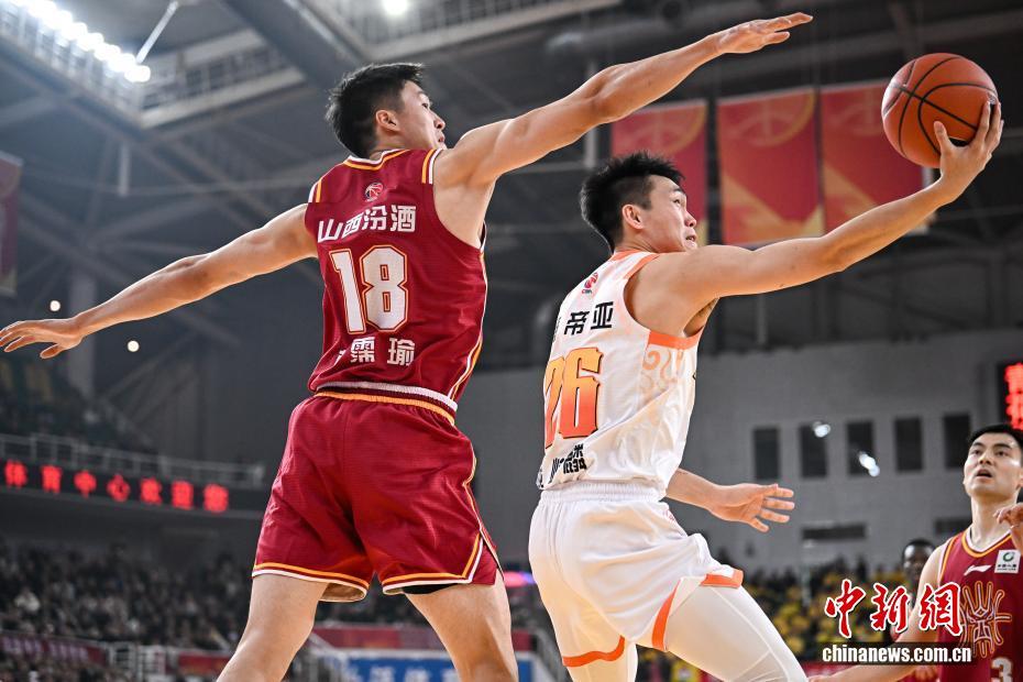 1月4日,山西队球员迪亚洛(红)在比赛中上篮。当日,在太原进行的2025-2026赛季中国男子篮球职业联赛(CBA)常规赛第10轮比赛中,山西汾酒队主场以91比77战胜江苏肯帝亚队。