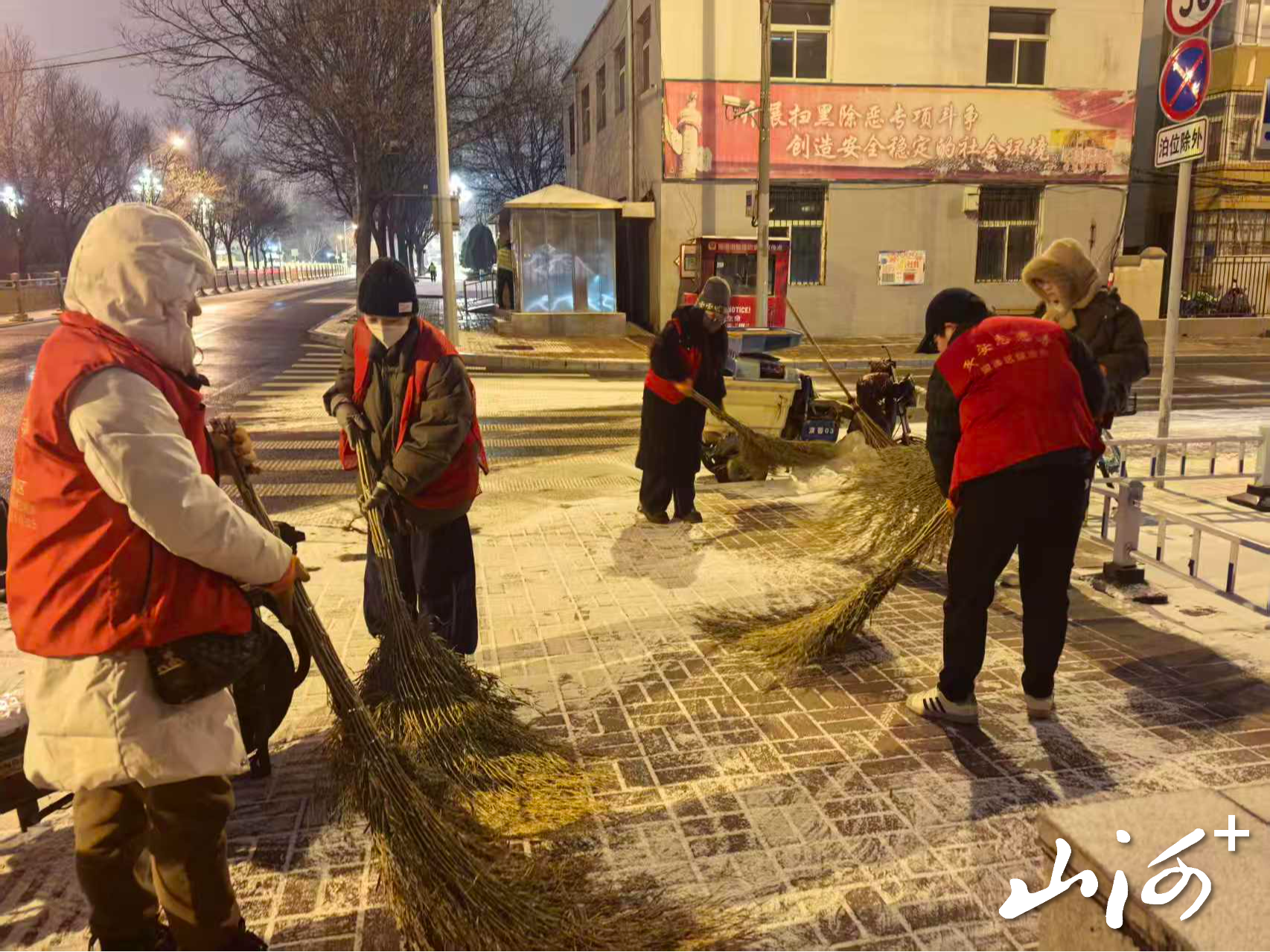 “集合啦!大家先简单热热身,注意保暖,干活的时候相互配合着点!”12 月12日清晨5时许,天还未亮,迎泽区庙前街道各清雪点位便已一派忙碌。