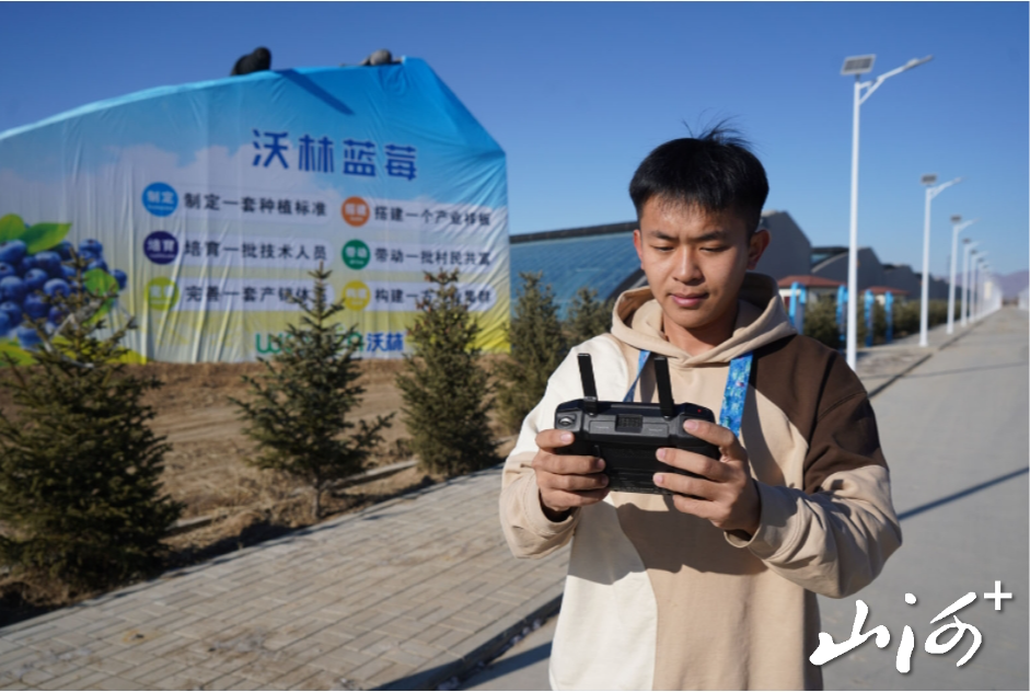 新业态创造的就业机会也从机房、办公室延伸至田间地头。在阳高县沃林现代农业产业园,来自内蒙古的“95后”刘艳鹏轻触屏幕,水肥一体化系统随即启动,将营养精准输送到每株蓝莓根部。这位园艺专业的毕业生,如今成了园区的“数字管家”。“过去觉得农业就得‘面朝黄土’,如今我们是‘面向屏幕,靠数据说话’,在阳高这方热土,外地人同样就业精彩。”而在销售端,去年刚刚大学毕业的本地青年裴旸,正手持手机,通过短视频平台热情地推广家乡的蓝莓:“我想让阳高蓝莓的香气,乘着网络飘到更远的地方。”如今,阳高设施农业已汇聚了上百名农业人才,他们中有返乡的本地人,也有外地远道而来的新农人,共同为乡村振兴注入新的活力。