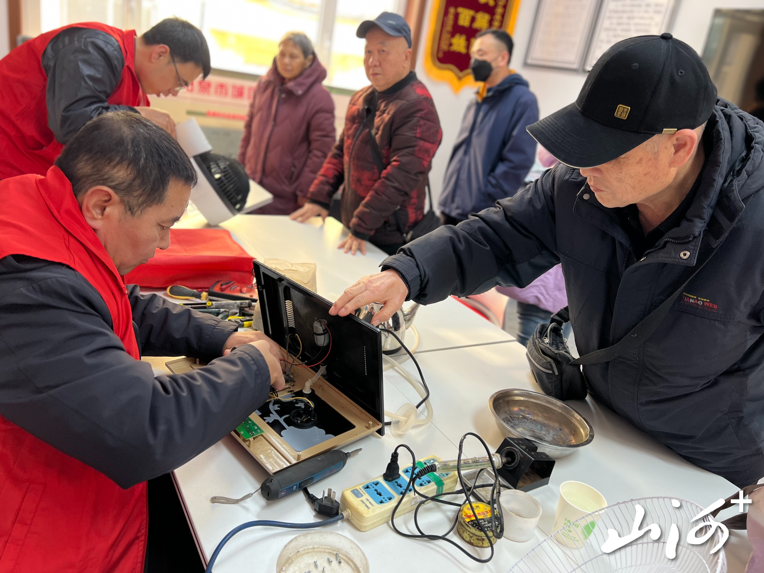 活动现场,志愿者们准时抵达新市街社区志愿服务点。闻讯而来的居民络绎不绝,陆续携带电风扇、电水壶、电饭煲、台灯、收音机等出现故障的小家电前来咨询维修。服务摊位迅速聚集人气,场面热烈而有序。