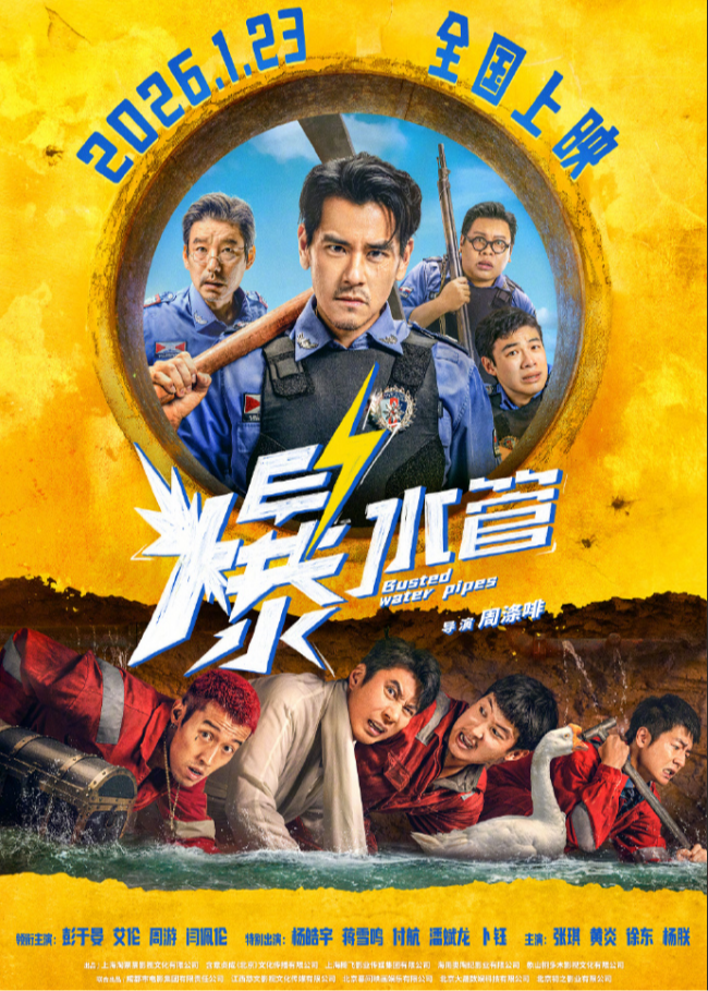 在犯罪喜剧《爆水管》中,让小镇连续7年维持0犯罪率的东南亚卷王警察于大海(彭于晏 饰),因为没有案子,和同事面临着即将被辞退的窘境。于是他决定和队友们自己动手,造个大案。此次发布的“不忍了 全疯了”版预告,可谓无“疯”不起浪,和平镇一波未平,一波又起。由罗四季(艾伦 饰)、罗浩(周游 饰)和牛大轮(闫佩伦 饰)组成的盗墓家族盯上了警局下的古墓,在想出伪装成水管工混进警局开挖的大胆决定后,所有人开团秒跟。预告中,两伙人在警局狭路相逢,共同揭开了和平镇史上最疯狂的“警局挖宝案”。一边是“顶疯作案”的东南亚警察团,一边是“邪修盗墓”的祖传盗墓贼,卧龙凤雏的警局挖宝团战正式开启!他挖他追,谁都插翅难飞!1月23日,一起解锁2026的第一场爆笑。