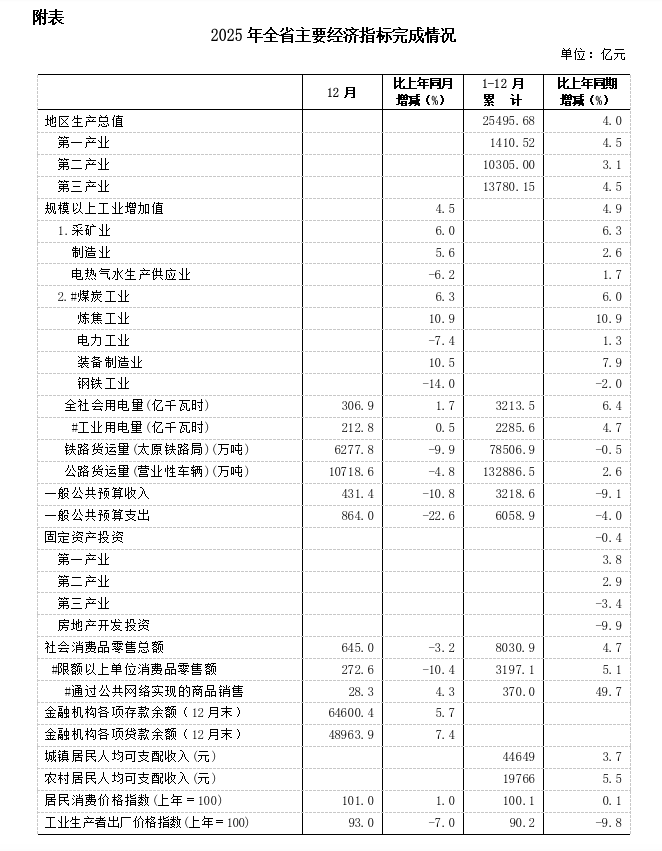 总的来看,2025年全省经济顶压前行,保持总体平稳、稳中有进态势,转型升级步伐稳健,高质量发展成效明显。同时也要看到,经济稳定回升的基础还不牢固,有效需求仍显不足。下一步,全省上下要深入贯彻党的二十大、二十届历次全会和中央经济工作会议精神,落实更加积极有为的宏观政策,着力稳就业、稳企业、稳市场、稳预期,推动经济实现质的有效提升和量的合理增长,实现“十五五”良好开局。
