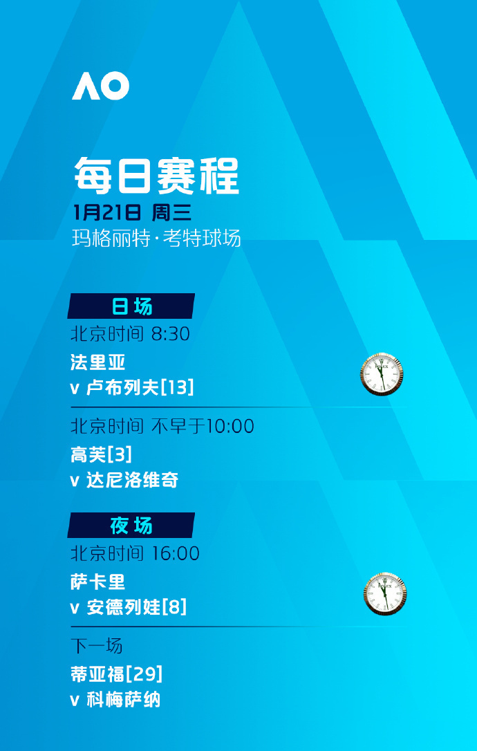 今天,2026年澳大利亚网球公开赛将迎来第四个比赛日。