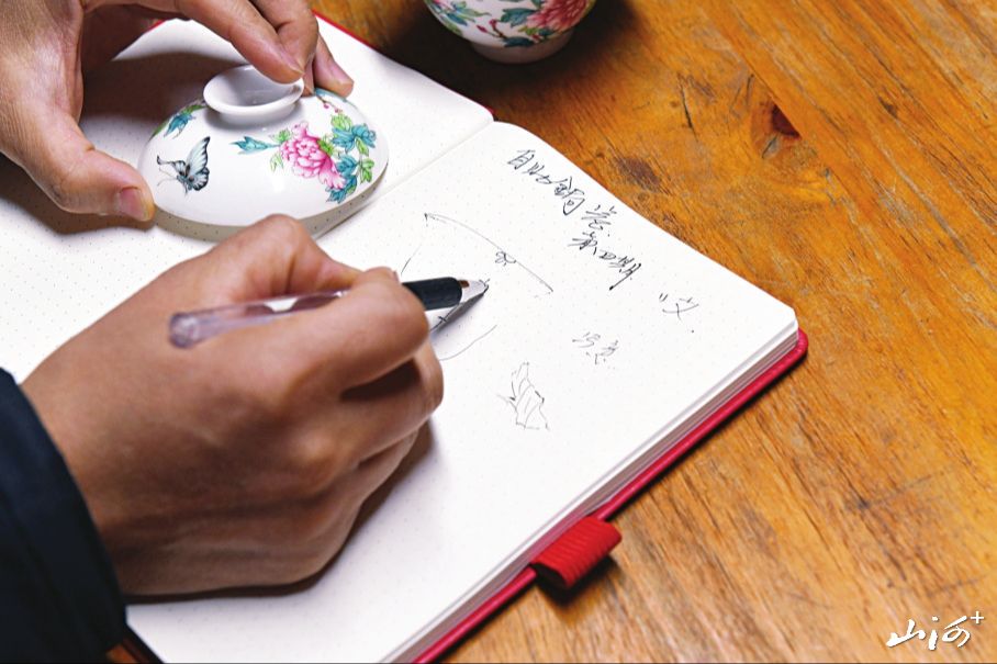 郭智军修复器物的第一步是画图,为它定制特有的修复方案。