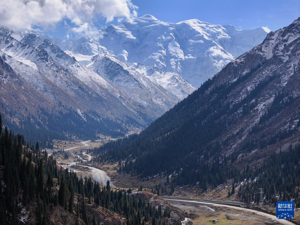 这是10月5日在新疆昭苏县拍摄的昭温公路西天山特长隧道进口端及附近施工现场(无人机照片)。该隧道为全线关键控制性工程,全长15.707千米,由北向南穿越天山山脉。新华社记者 胡虎虎 摄