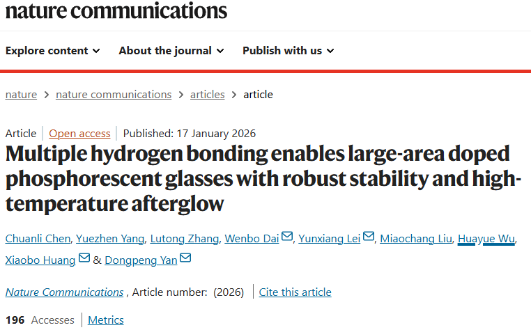 该研究针对特种材料燃烧流场可视化及点火初期预警等关键需求,报道了聚集诱导发光材料领域的最新突破。论文创新性地通过分子动力学方法,揭示了无定型系统内多重无序氢键对三重激子非辐射衰减的抑制机理,为高性能、大面积掺杂磷光玻璃材料的可控制备提供了关键理论支撑。这一发现不仅深化了对复合材料结构及表界面行为的科学认识,也为开发具有优异稳定性和高温余辉性能的新型材料奠定了坚实的理论与技术基础。