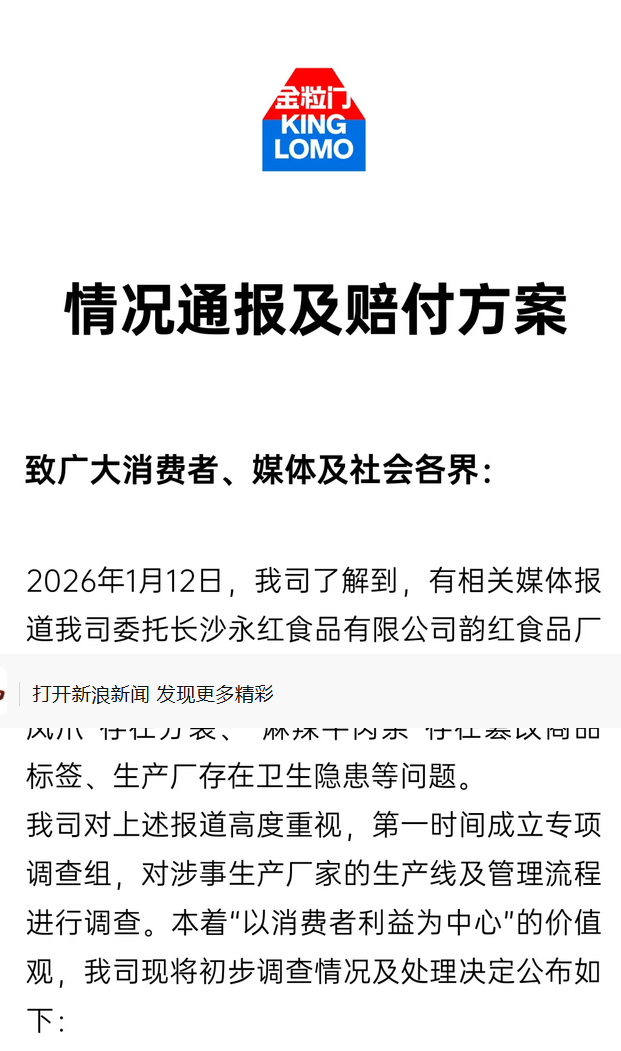 金粒门发布情况通报称,经公司专项调查小组核查,永红食品确有在“柠檬酸辣去骨凤爪”生产过程中,统筹管理不当,盲目追求包装视觉统一性,在生产环节对已封包产品进行二次分装的情况,此举违反了有关食安规范,对消费者深表歉意。经核对原始生产记录,目前尚未发现人为篡改“麻辣牛肉条”产品原始生产日期的行为,公司将积极配合有关市场监督管理部门的调查工作,严格认真核实全部批次产品进出厂记录,及时向社会公众公布调查结论。
