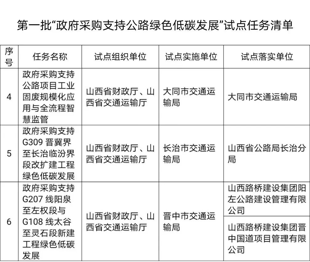 财政部、交通运输部近日公布第一批25项“政府采购支持公路绿色低碳发展”试点任务,其中山西三个项目入选。