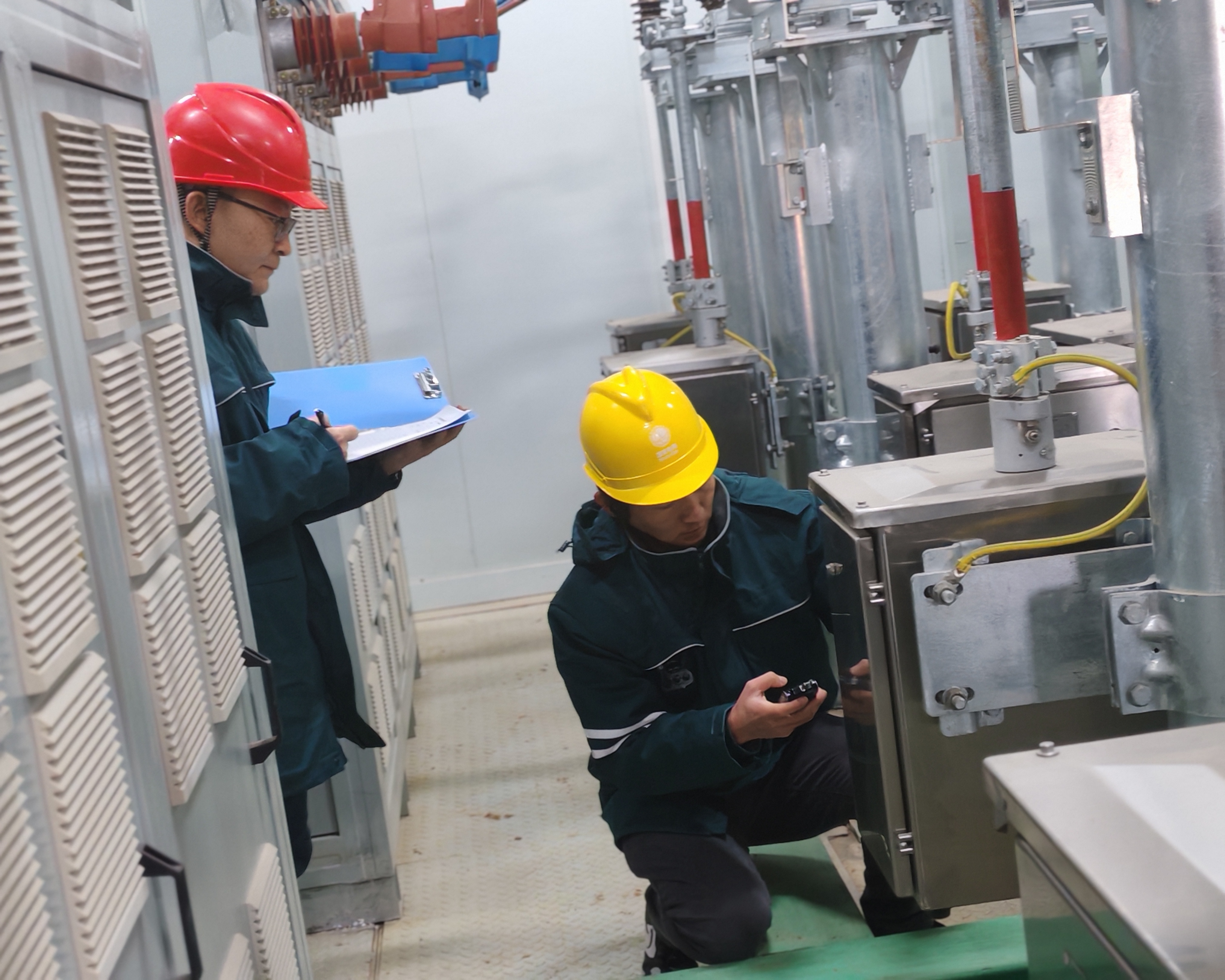 图为检修人员在±800千伏灵绍线融冰站内按照规程完成断路器合闸操作。