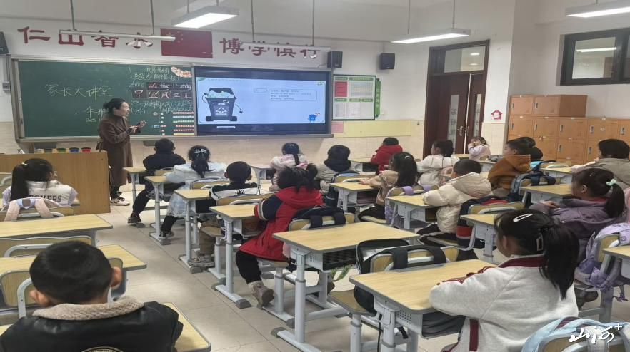 健康防护与安全守护成为本次讲堂的重要内容。一年三班郭奕阳妈妈身着白大褂,讲解洗手的重要性后,带领孩子们实操练习并纠正动作,让科学洗手的习惯深入人心;一年四班张予骞妈妈通过短片讲解校园欺凌的常见形式,重点提醒起绰号、孤立同学等易被忽视的欺凌细节,同时分享自我保护方法与家校沟通技巧;一年五班闫怿彤妈妈借助PPT,科普冬季流感、诺如病毒的传播途径与症状,分享佩戴口罩、勤通风、均衡饮食等预防措施,强化孩子们的健康防护意识;一年六班何佳颖妈妈手持牙齿模型与牙刷,讲解蛀牙形成原因,示范巴氏刷牙法的动作要领,纠正不良刷牙习惯,争做“护牙小卫士”。“‘家长大讲堂’是学校家校共育工作的一次生动实践。”山水城小学相关负责人表示,此次活动不仅让家长深度参与学校教育教学过程,更让孩子们在多元体验中收获知识、提升能力。