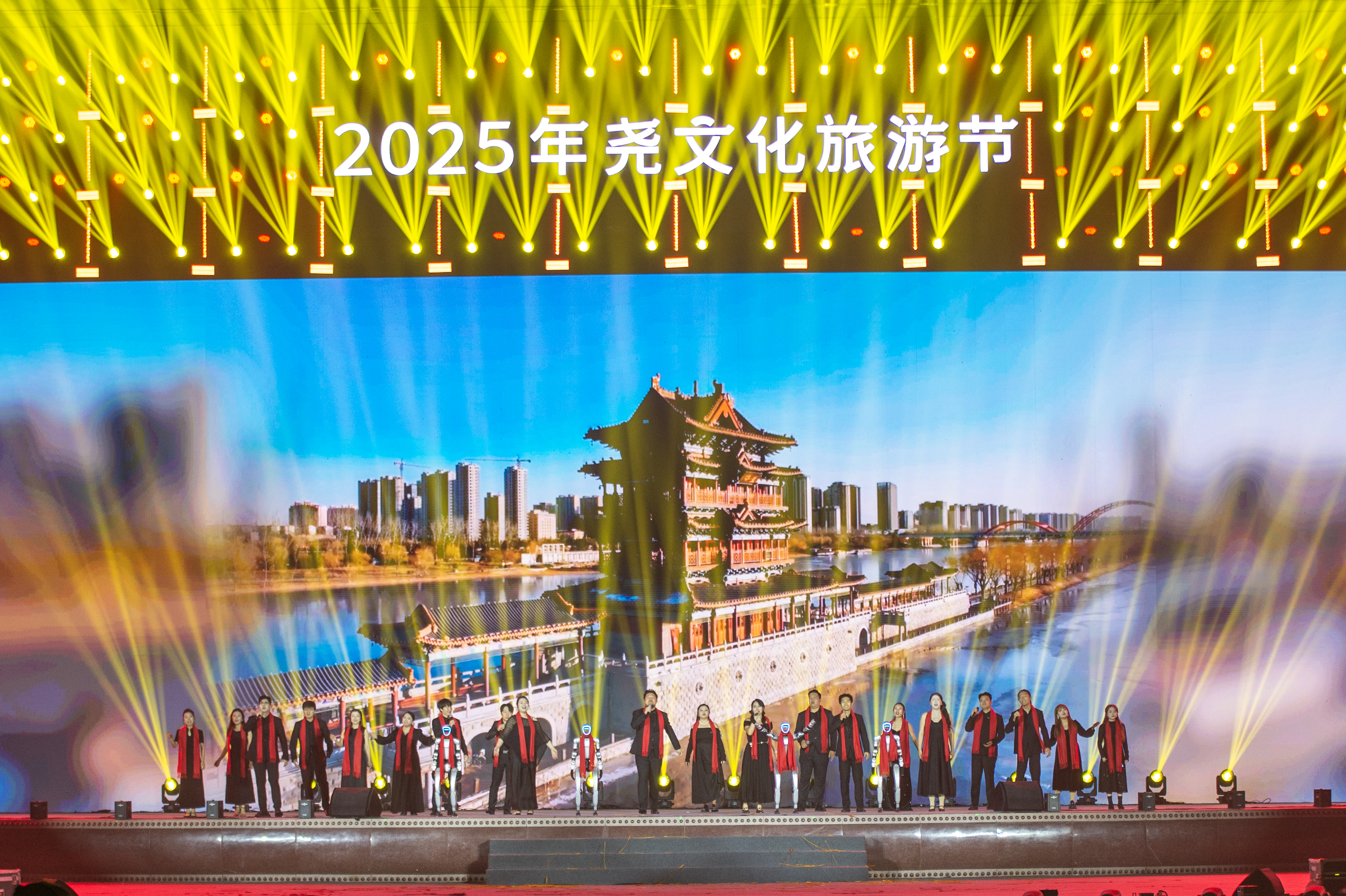 开幕式后,与会嘉宾共同观看了以“光被四表·德耀千秋”为主题的大型文艺晚会。晚会以“光”为叙事主线,分为“光启八荒·鼓乐传响”“和光同尘·万物生长”“光织华梦·文明传承”“光照千秋·协和万邦”四个篇章,以艺术化的手法展现尧文化的深厚底蕴与时代风采,为现场观众带来一场贯通古今的文化视听盛宴。