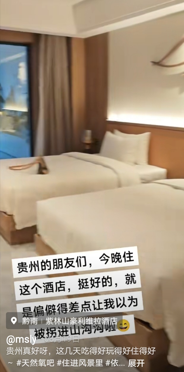 山西晚报·山河+记者注意到,在主流旅游消费平台上,该酒店收获了较高关注度和积极评价。携程数据显示,酒店为独山县排名第一的豪华型住宿,评分为4.9分(满分5分),已有542条住客点评。部分游客在抖音等社交平台留言表示“体验非常好”。