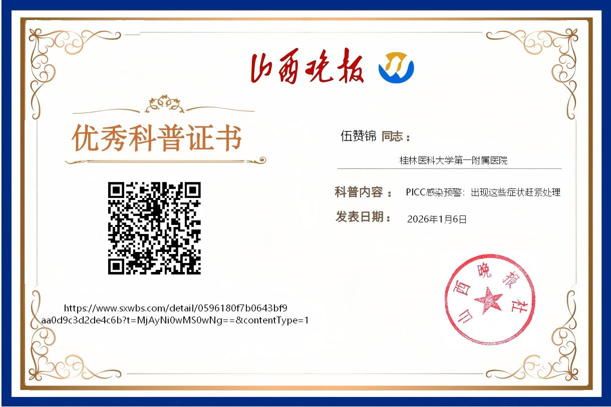 PICC是长期治疗的“生命线”,感染预警信号需患者与家属共同警惕。早识别、早处理、早预防,才能避免感染扩散,保障治疗顺利。