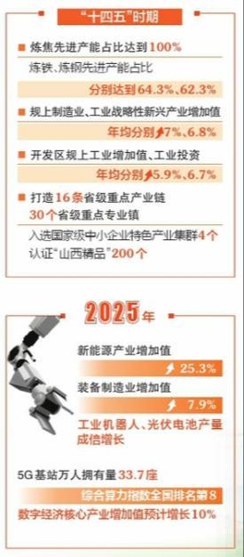 新培育30户以上智能工厂、数字经济核心产业增加值增长10%、省级重点产业链营收达到8400亿元、细分培育30条以上产业链……一个个目标,一组组数字,彰显着山西加快打造现代化产业体系、实现新旧动能转换的决心,产业优、质量高、效益好、可持续的产业发展新图景更加清晰。