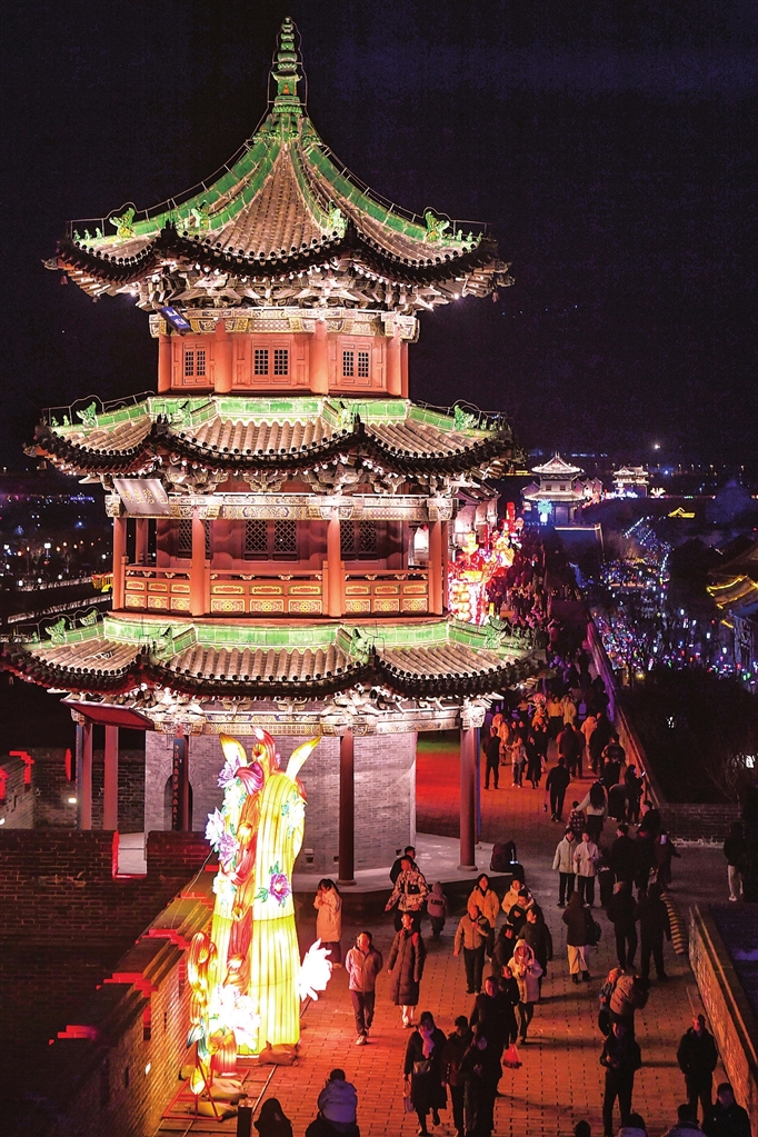 春节期间,她在孝义老家多次刷到这个景区爆火的视频,白天民俗表演不间断,晚上同样璀璨夺目。她很羡慕,到太原后趁着年味还没散去,赶紧去体验。一行人步入古县城,立刻感受到了浓郁的节日氛围。各式各样的彩灯早已点亮,市楼、东西城墙处上演着灯光秀,极具视觉冲击力。几个年轻人边逛边拍照,到了深夜才恋恋不舍地离开,脸上都洋溢着满意的笑容。杨惠斌说:“虽然不能和家人过节,但与同龄人在一起也很热闹。太原的年味特别浓,夜景格外美,还好没错过。”