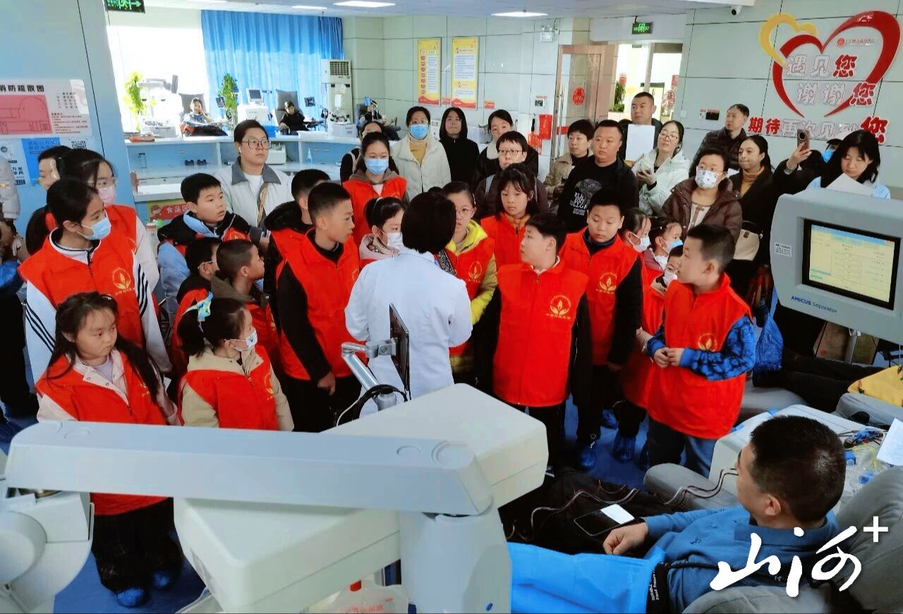 在血液中心,从供血科、到机采大厅到检验科,再到无偿献血科普教育基地,孩子们好奇地观察血液检测仪器,认真记录献血注意事项,纷纷表示,“原来一袋血能拯救这么多生命。”