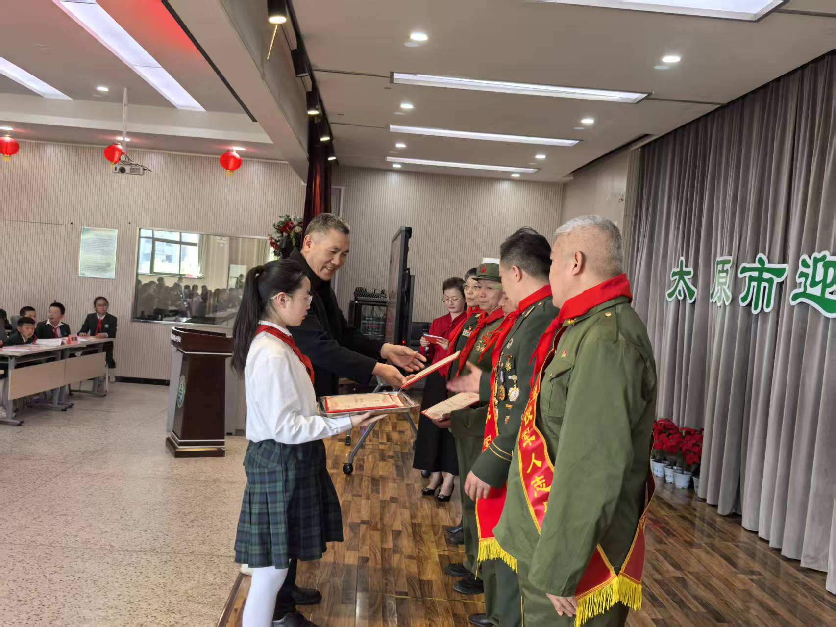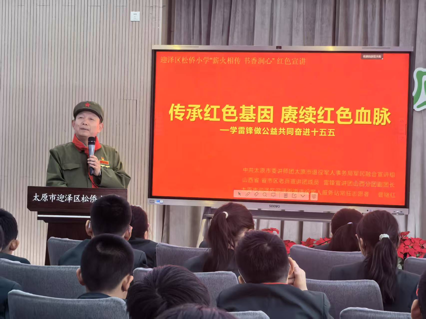 山西晚报·山河+讯 4月10日下午,太原市迎泽区松侨小学五年级师生与党员教师齐聚校园,隆重举行“薪火相传,书香润心”老兵红色宣讲活动。多位退役军人与红色宣讲嘉宾走进校园,用鲜活故事传递红色力量,为师生带来一堂生动深刻的爱国主义思政大课。