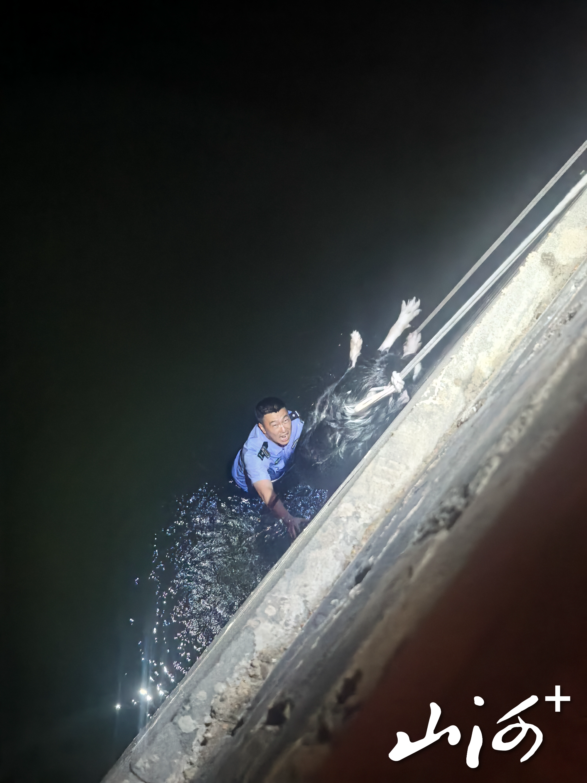 看着群众焦急的神情,以及河中挣扎微弱的宠物狗,赵绪龙当机立断,立即找来绳索,将一端牢牢固定在岸边,另一端紧紧系在自己身上。在做好简单防护后,民警毅然孤身顺着湿滑的城墙下到护城河中,在浑浊的水里仔细搜寻。经过一番努力,最终成功将落水的宠物犬救助上岸。