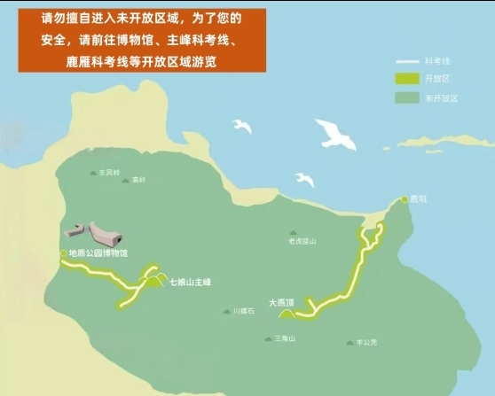 据深圳大鹏半岛国家地质自然公园官方微信公众号2025年2月1日发布的文章,该公园现已建成开放地质博物馆1座、登山科考线2条,分别为3.3公里的主峰登山科考线和3.6公里的鹿雁登山科考线。该园提醒:请勿擅自进入未开放区域,为了您的安全,请前往博物馆、主峰科考线、鹿雁科考线等开放区域游览。