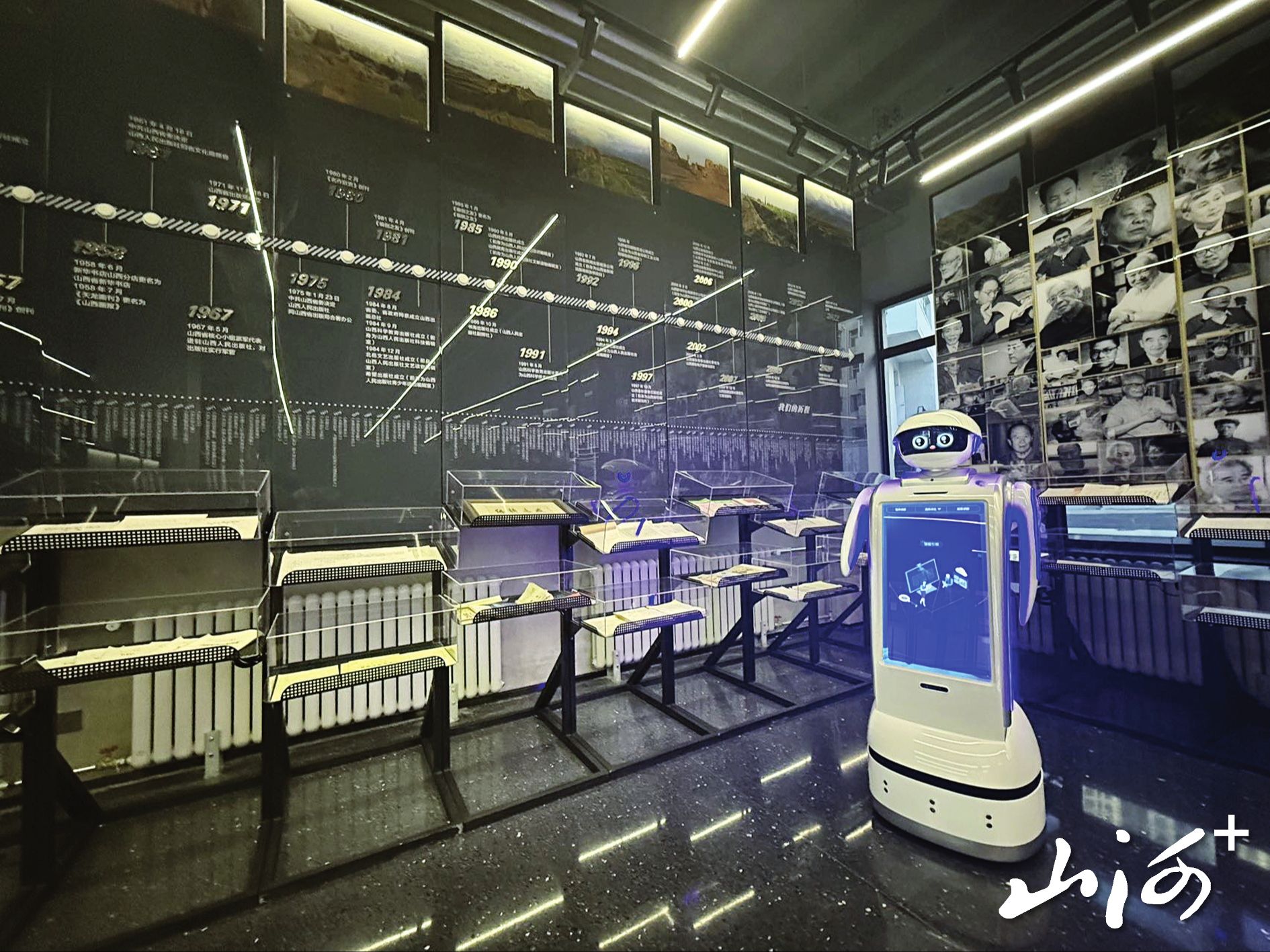 面对如此庞大的体量,山西晚报·山河+记者一时有些茫然,不知道该从哪里看起。“不用发愁,虽然我们的馆内工作人员不多,但是我们有个‘好帮手’!”刘龙笑着指了指门口一个身高1.2米左右的智能机器人。