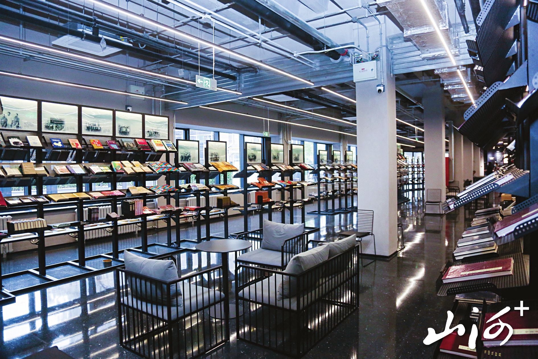 走进馆内,山西晚报·山河+记者发现,和一般图书馆布局不同的是,这是一个高达5米的挑高开放式展厅,最大限度地保留了厂房原有的钢架结构与空间尺度,裸露的混凝土梁柱与充满秩序感的线条,呼应着包豪斯建筑美学,无言地诉说着这里曾作为山西出版产业重要生产基地的往昔。