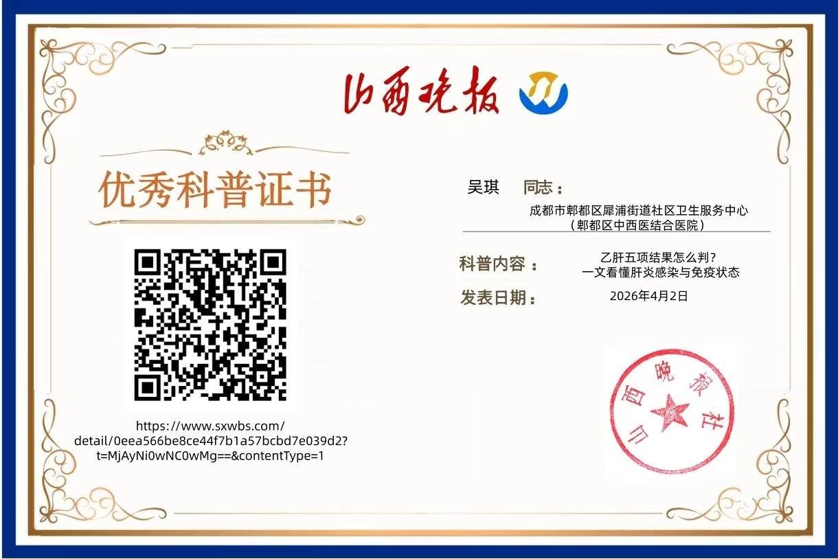 作者:成都市郫都区犀浦街道社区卫生服务中心(郫都区中西医结合医院) 吴琪