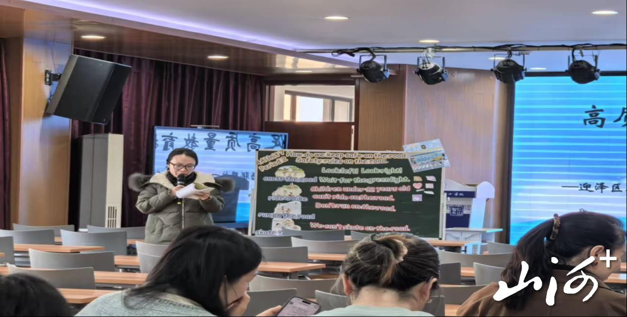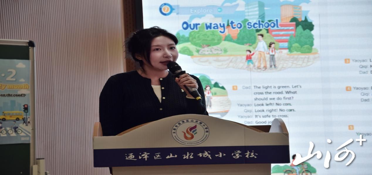 在课例展示环节,山水城小学刘丹老师执教Unit 7 Period 1 “Cross the road safely”。课堂以英文歌曲律动导入,通过观察交通标志、观看安全动画、完成“安全行为勾选”等任务,引导学生掌握交通信号灯相关表达和过马路的安全规则。角色扮演等环节让学生在模拟道路情境中运用所学,实现了语言学习与安全意识培养的有机融合。