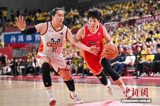 四川队球员艾瑞克(白衣)在比赛中带球突破。